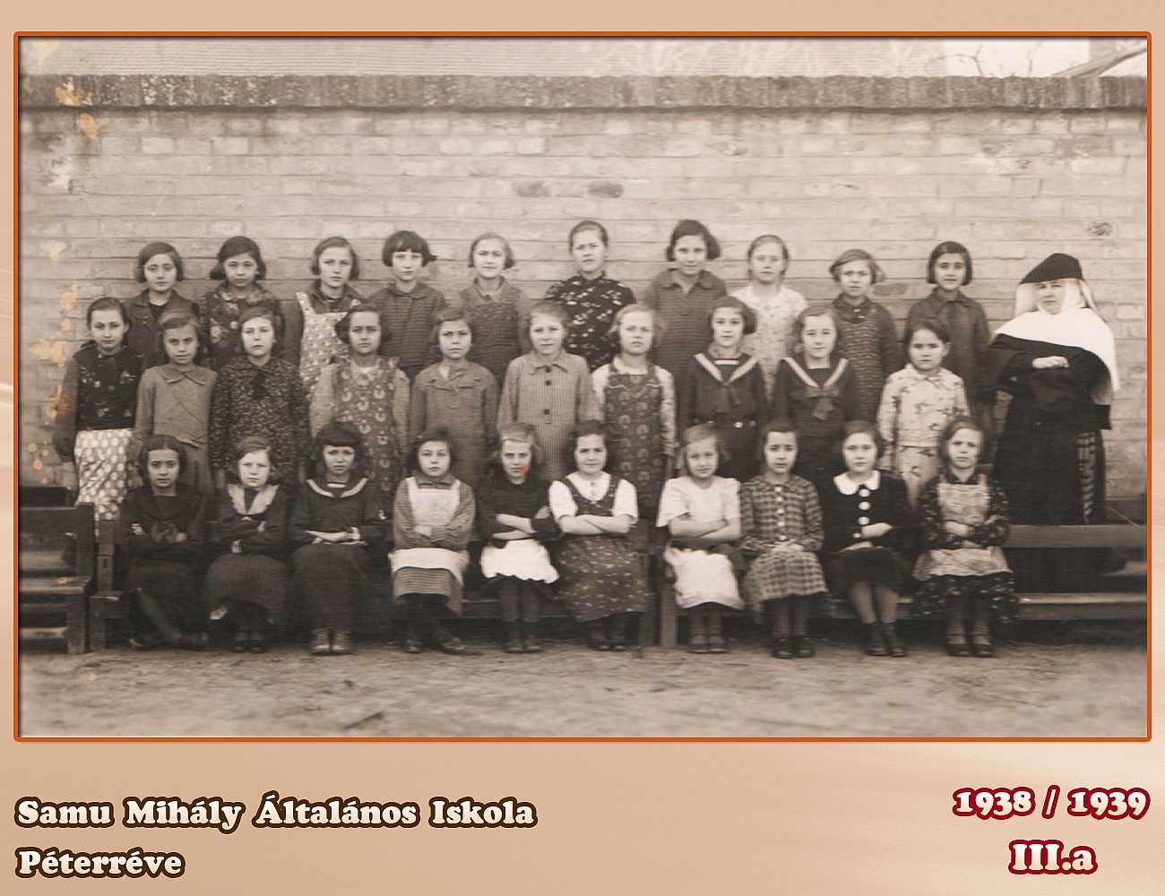 ŠKOLSKA GODINA: 1938/1939ODELJENJE: 3.aRAZREDNI STAREŠINA: Mária Kreszencia nővér