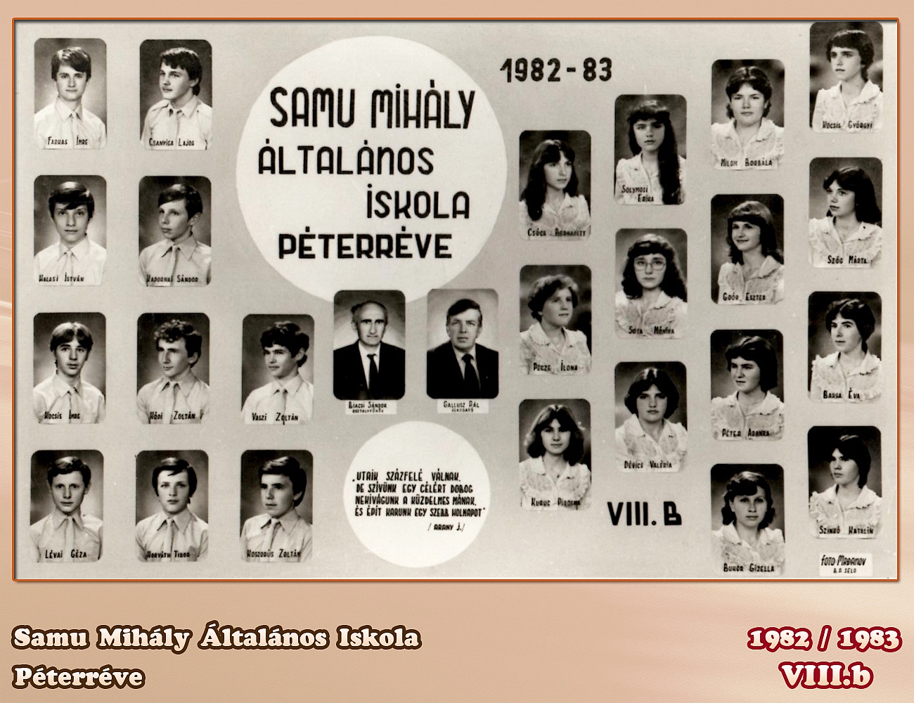 ŠKOLSKA GODINA: 1982/1983ODELJENJE: 8.bRAZREDNI STAREŠINA: Biacsi Sándor