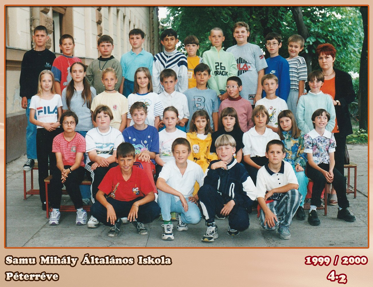 Felső sor balról jobbra:Horváth Tamás, Agócs András, Szabó Roland, Haszák Zsolt, Sípos Dejan, Pecsenka Alfréd, Kode Gábor, Tüski Balázs, Bozsóki Kornél, Kiss Endre. Felső középső sor balról jobbra: Rab Evelin, Terék Emese, Csúcs Renáta, Klebecskó Szamanta, Bozsóki Ottó, Varga Dániel, Ötvös Endre, Sofró Csaba, Vastag Márta. Alsó középső sor balról jobbra: Korhecz Krisztina, Csernyák Klementina, Molnár Enikő, Gyurcsik Klementina, Bovánovics Laura, Poltura Emese, Szalonnás Judit, +Péter Andrea, Koliger Enikő. Alsó sor balról jobbra: Sípos Ferenc, Agócs Attila, Mihalecz Sándor, Goór Imre. |