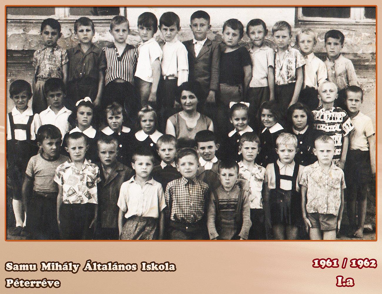 Tanító néni Síndeles Irén 1 sor bal Tokodi Sándor Kovács László Maka József 2 sor jobb Kis Mihály Kalapos József Krizsák György Kis Lajos Szilágyi Szilveszter Kis Mihály Százi ........................ Teleki József 3 sor bal Márkus Irén Szórák Rozsa Majsai Zsuzsanna Síndeles Katinka Zsellér Rozsa ........... Mária balról Maka Imre Tot József Balassa Zoltán Tót János 3 sor bal Muhi János Nagy Imre Szőke Ferenc Gór Károly Sétáló Ferenc Pataki Mihály Beretka József Dávid László Lukács Zoltán Sípos Károly ................ sajnálom ha valakit nem jól írtam be vagy nem tudtam a nevét bocsánat !