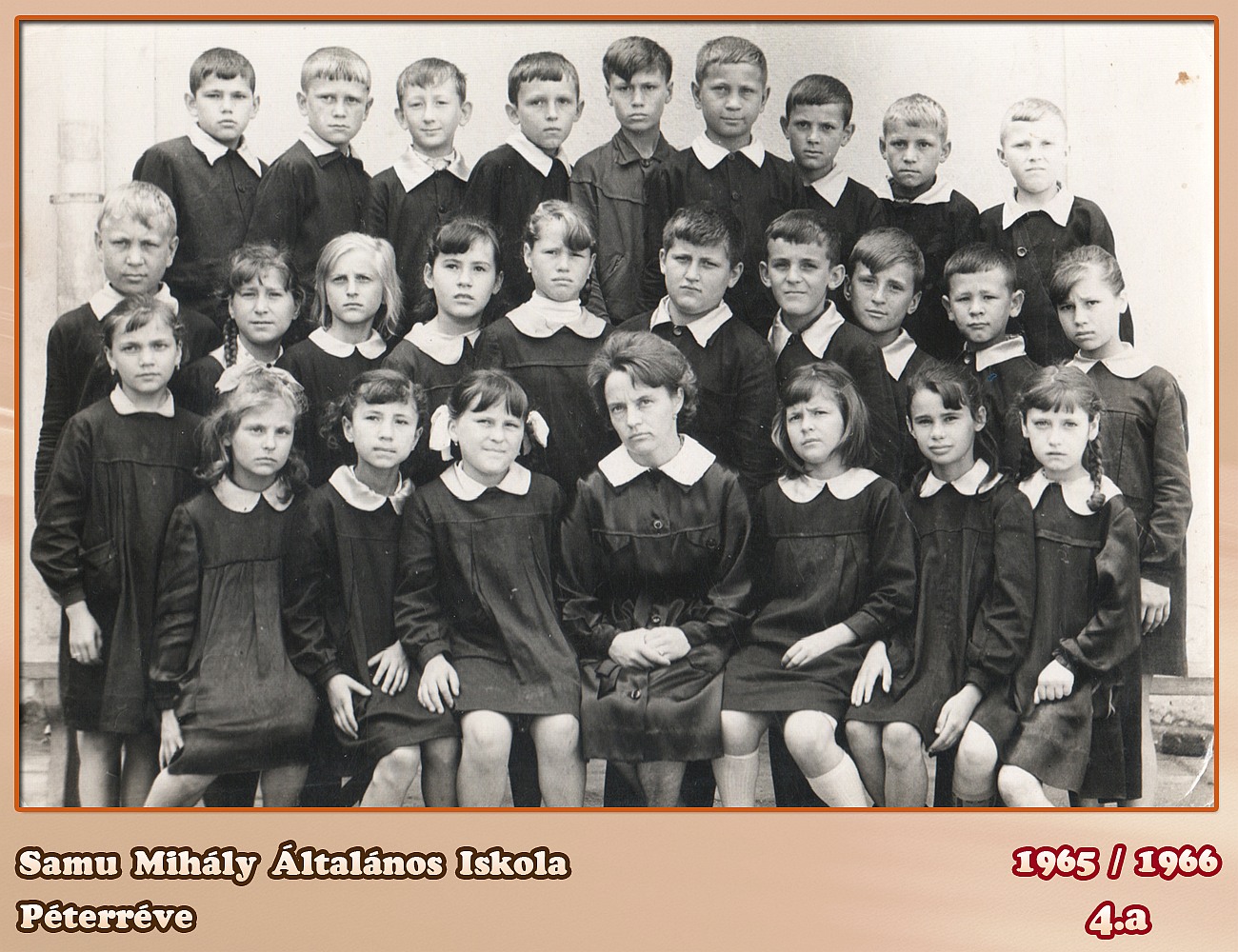 ŠKOLSKA GODINA: 1965/1966ODELJENJE: 4.aRAZREDNI STAREŠINA: Szorcsik Mária