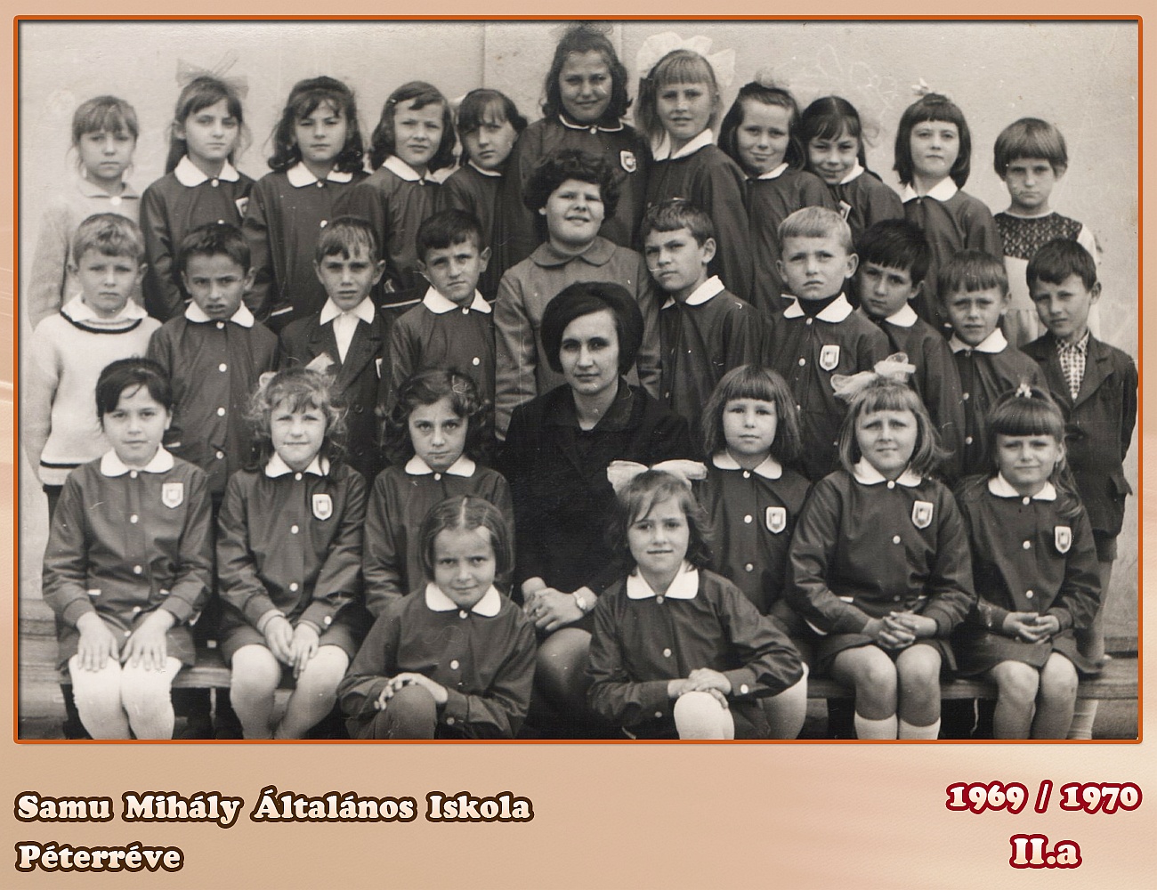 A kepen lathato szemelyek: A lanyok nevet többnyire lanykori nevükön tudom, felsösor jobbrol balra Szep Margit ( Halapi), Parduc Klari,Kuruc Eva ex Mezei,Cenc Maria, Sindeles Valeria, Pataki Terez, Tarjan Magdi, Pecze Evike, Halapi Vali, Berec Terike, Peter Gizi, 2. sor balrol jobbra. Pecze Feri, Szekeres Pityu, Szabo Imre, Csernyak Karcsi, Pataki Jolan, Csabi Imre, Setalo Sanyi, Angyal Jancsi, Rab Sanyi, David Jozsi, ülnak jobbrol balra:Bartusz Evi, Nagy Erzsi, Galac Gizi, Tanitoneni Juhasz Zsuzsanna, Kalapos Erzsike ( Domonkos), Turcsik Gizi ( Krizsak), Horvath Teri Terdelnek: Juhasz Eszti es Szazi Magdi