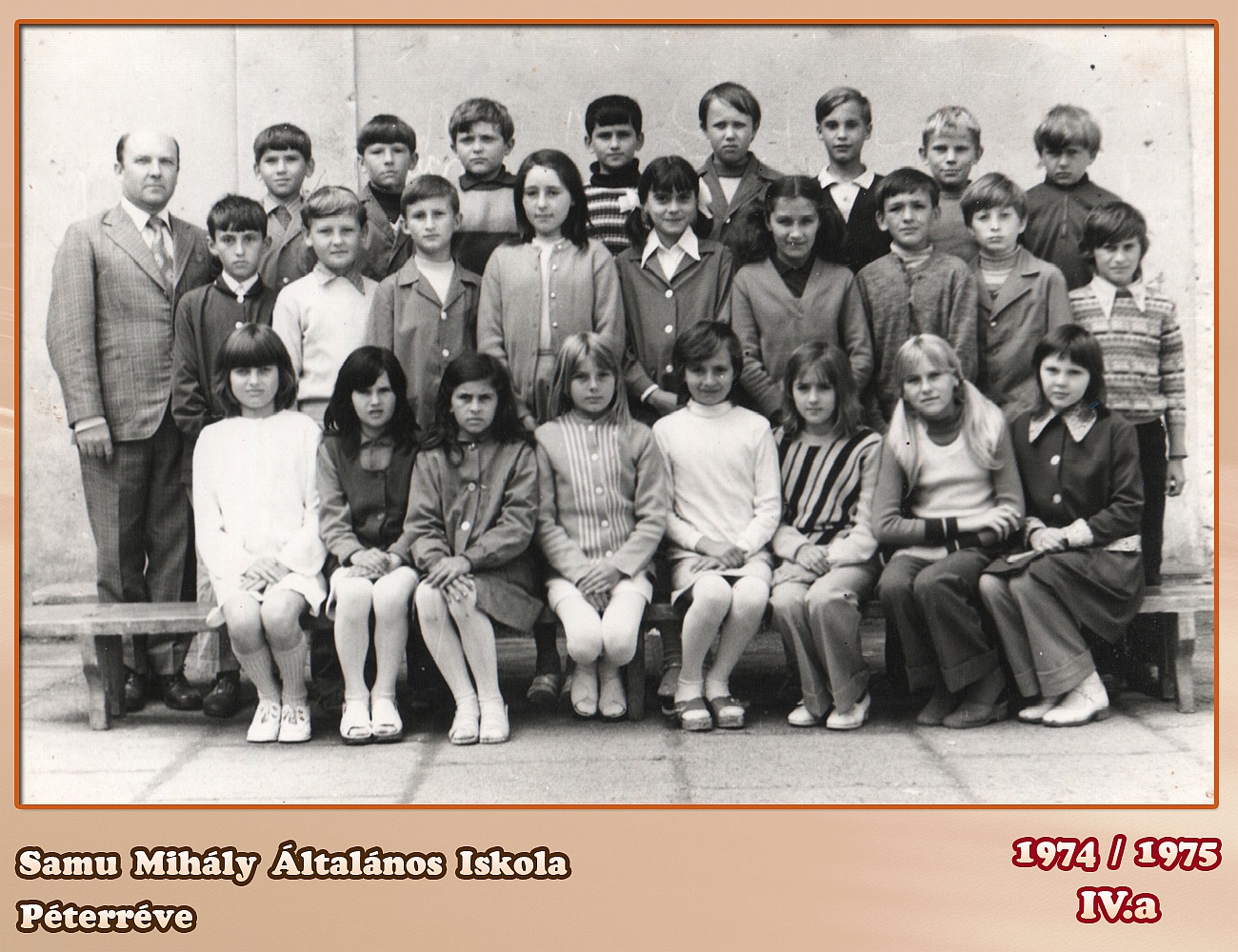 ŠKOLSKA GODINA: 1974/1975ODELJENJE: 4.aRAZREDNI STAREŠINA: Farkas Nándor