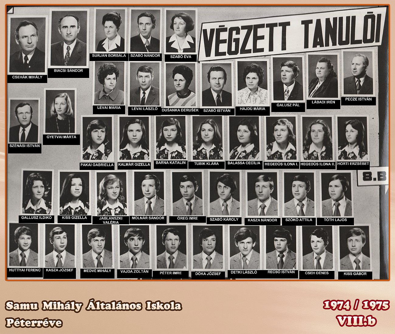 ŠKOLSKA GODINA: 1974/1975ODELJENJE: 8.bRAZREDNI STAREŠINA: Biacsi Sándor