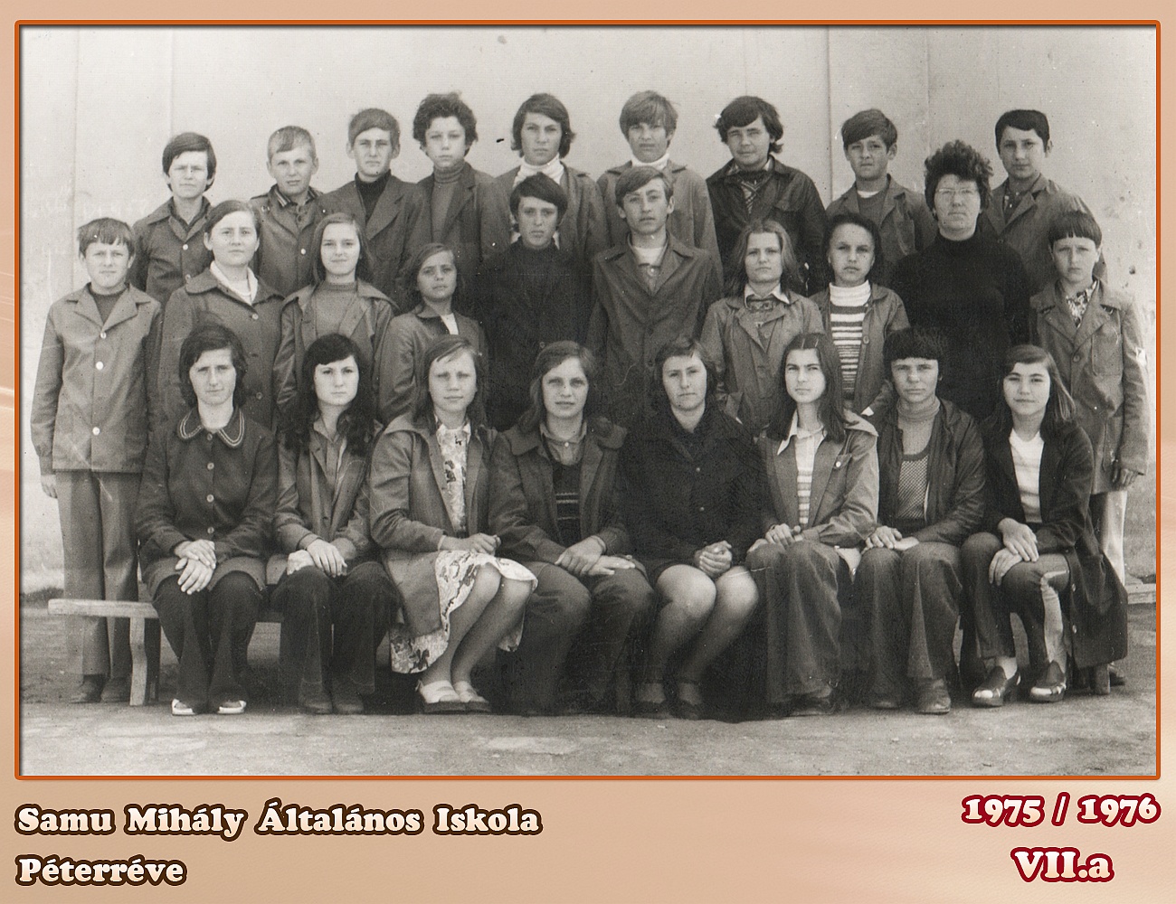 ŠKOLSKA GODINA: 1975/1976ODELJENJE: 7.aRAZREDNI STAREŠINA: Mihály Antmann Mária