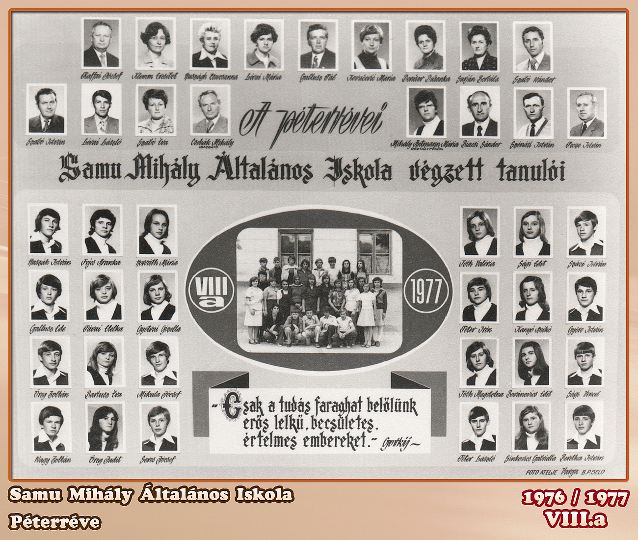 ŠKOLSKA GODINA: 1976/1977ODELJENJE: 8.aRAZREDNI STAREŠINA: Mihály Antmann Mária