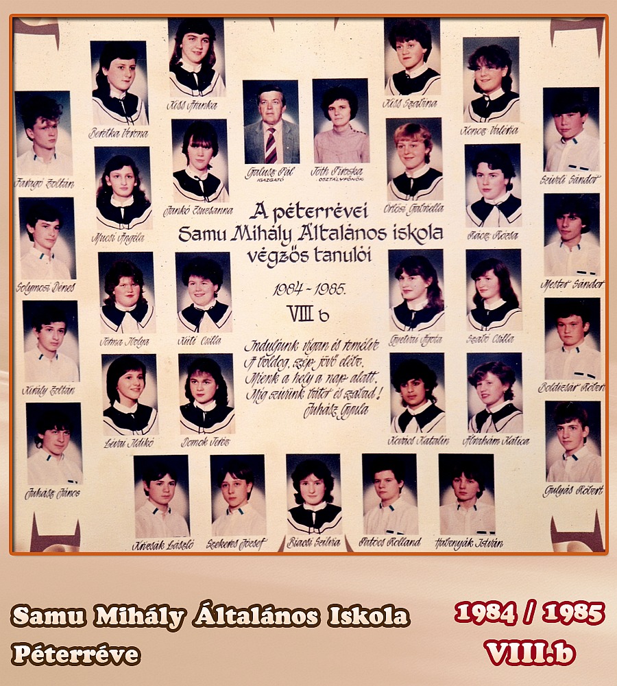 ŠKOLSKA GODINA: 1984/1985ODELJENJE: 8.bRAZREDNI STAREŠINA: Tóth Piroska