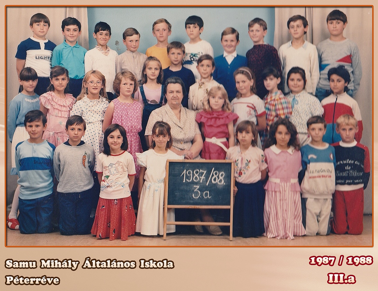 ŠKOLSKA GODINA: 1987/1988ODELJENJE: 3.aRAZREDNI STAREŠINA: Nešić Erzsébet