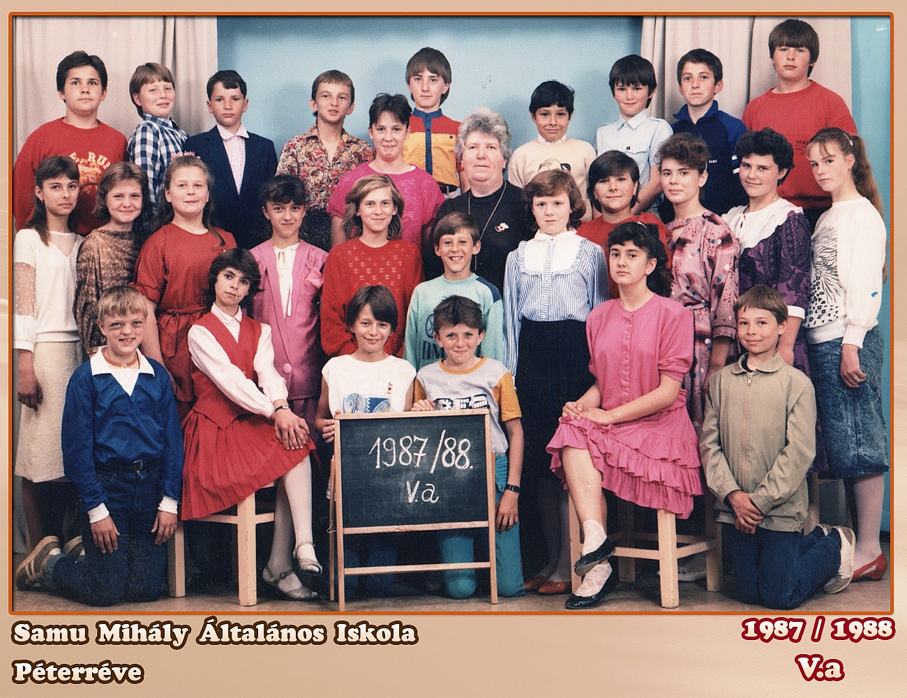 ŠKOLSKA GODINA: 1987/1988ODELJENJE: 5.aRAZREDNI STAREŠINA: Mihály Antmann Mária
