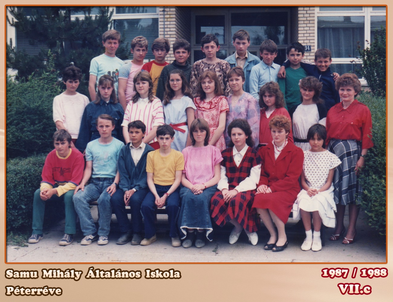 ŠKOLSKA GODINA: 1987/1988ODELJENJE: 7.cRAZREDNI STAREŠINA: Szabó Magdolna