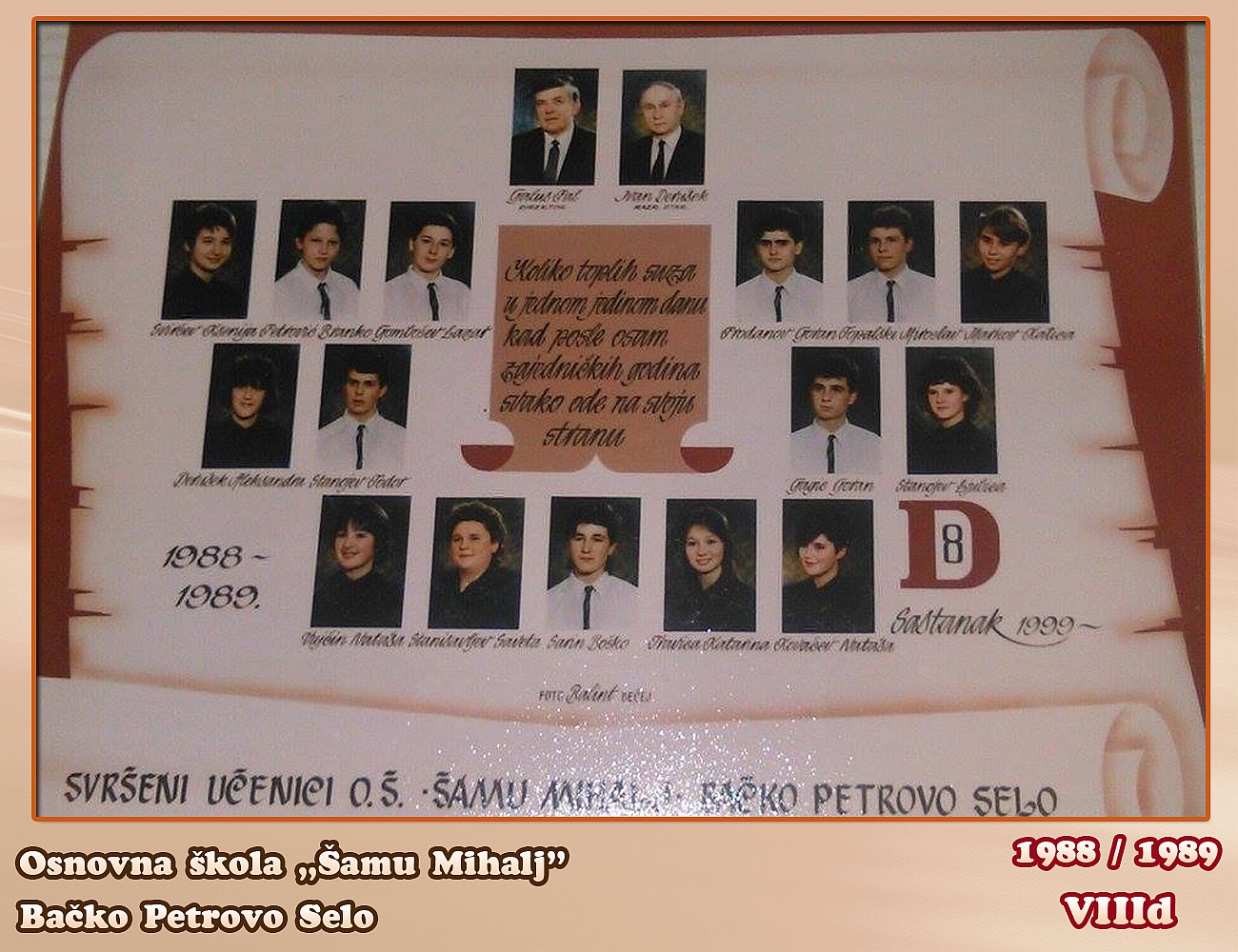 ŠKOLSKA GODINA: 1988/1989ODELJENJE: 8.dRAZREDNI STAREŠINA: Derušek Ivan