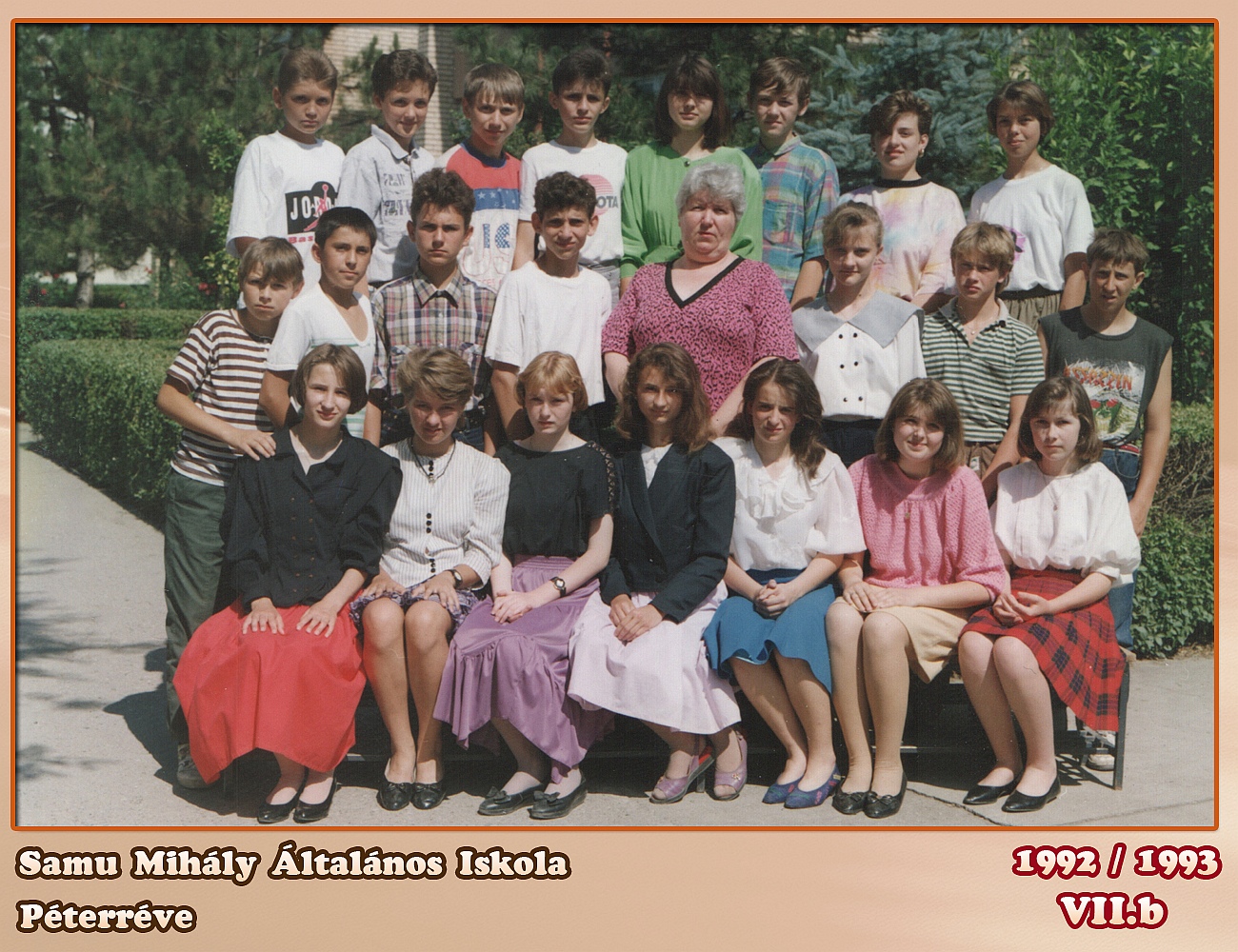 ŠKOLSKA GODINA: 1992/1993ODELJENJE: 7.bRAZREDNI STAREŠINA: Mihály Antmann Mária