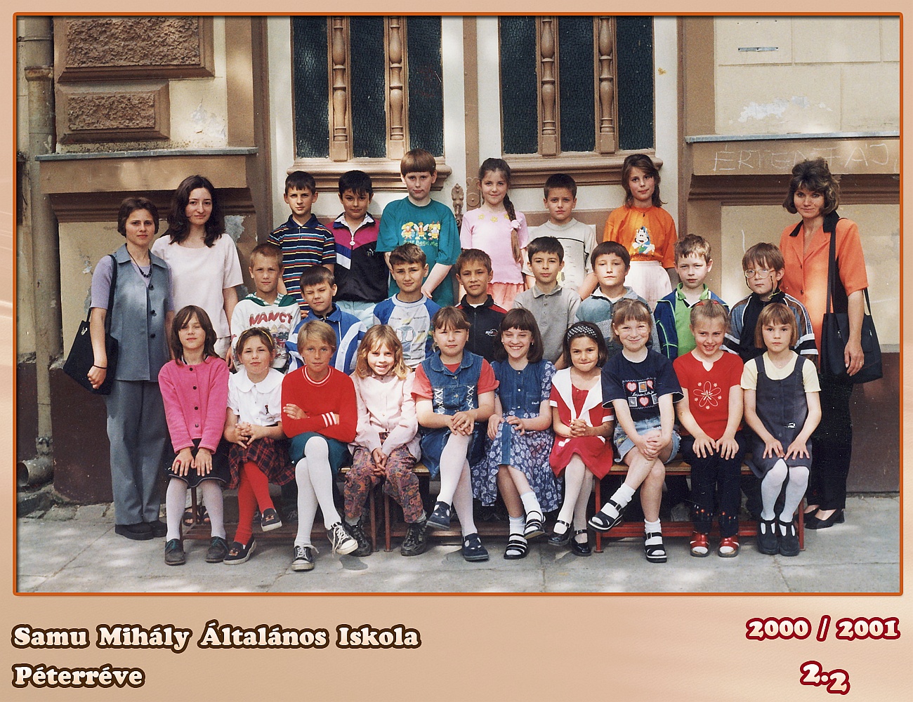 Felső sor (balról-jobbra): Bozsóki Dániel, (? nem emlékszek a kisfiú nevére), Kiss Norbert, Szalma Izabella, Ricz Ármin, Kiss Tímea Középső sor (balról-jobbra): Berecz Zsolt, Tóth Sándor, Pintér Zoltán, Szenczi Attila, Dóka Ádám, Godó Imre, Péter Krisztián, Pecze Róbert, Gallusz Bolyos Aranka (tanítónéni) Alsó sor (balról-jobbra): (Burza) Szanella, Krizsák Márta, (?) Andrea, Deák Csilla, Hegedűs Ágnes, Sánta Judit, Rus Natasa, Harci Nikoletta, Pecze Anikó, Recsó Anikó A két hölgy balról kistanítónénik voltak, a nevükre nem emlékszek. |